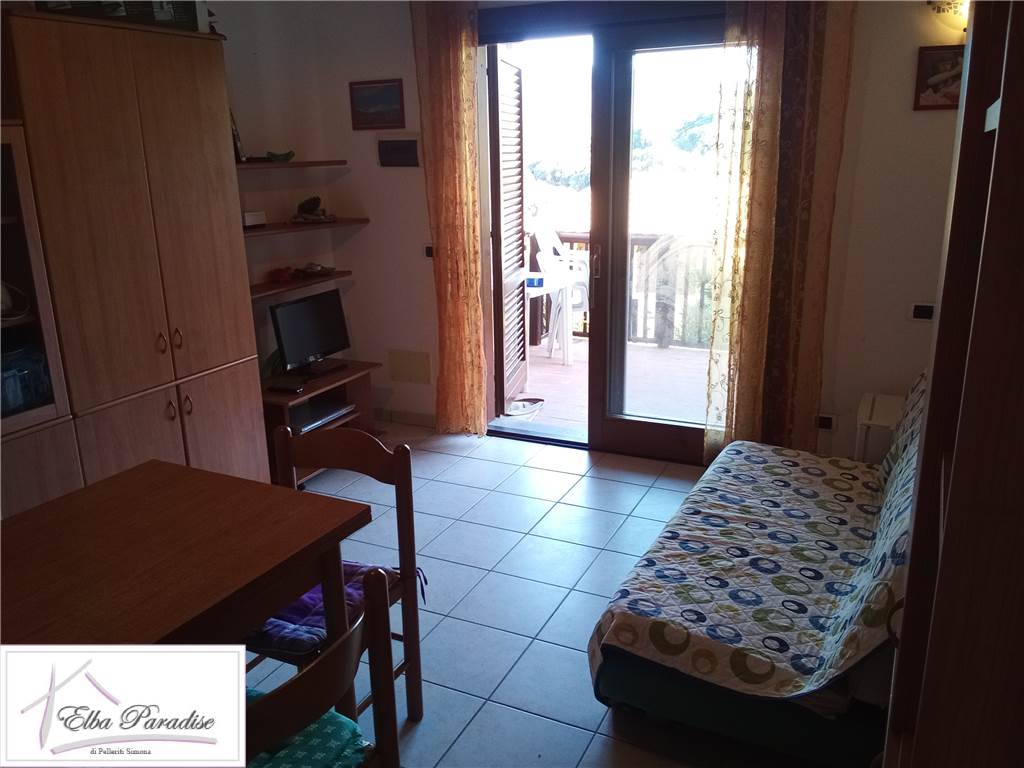 For sale charming two-room apartment with sea view terrace and parking space, located in the countryside of the hamlet of Procchio. The property has an independent entrance from a private external courtyard and consists of an entrance onto a dining terrace, living area with open kitchen, double bedroom, hallway, and bathroom with shower. The property also includes a private parking space. With four beds, the sea can be reached on foot in just 5 minutes. Ideal for those looking for the tranquility of the countryside but want to be close to the sea. Contact us for more information and to book a visit!